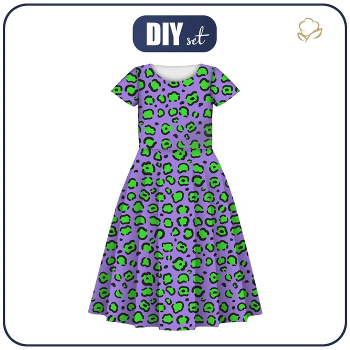 Dětské šaty "MIA" - NEON LEOPARD vz. 1 - šicí souprava (122-128)