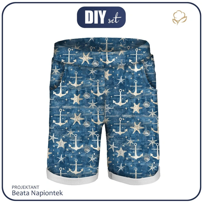 Sada obsahuje nutné materiály k šití dětských šortek s kapsami.