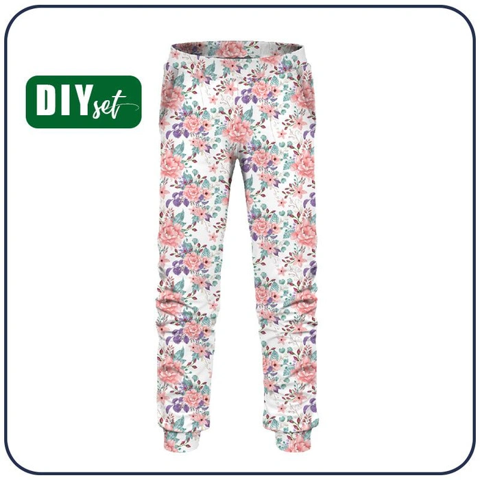 DĚTSKÉ TEPLÁKOVÉ KALHOTY (LYON) - KVĚTY ŠÍPKOVÉ RŮŽE vz.1 (KVETOUCÍ LOUKA) - teplákovina