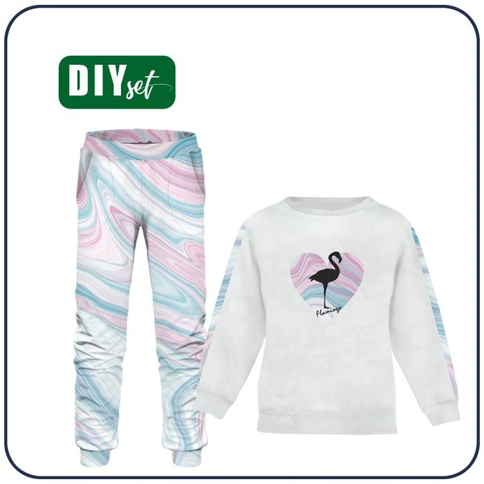 DĚTSKÉ TEPLÁKY (MILAN) - Plameňák / Akvarely - teplákovina (122-128)