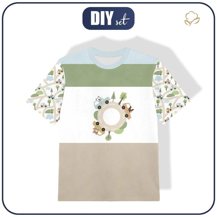 DĚTSKÉ TRIČKO - BAREVNÁ AUTÍČKA / kruhový objezd (MĚSTSKÉ MEDVÍDCI) - single jersey (116/122)