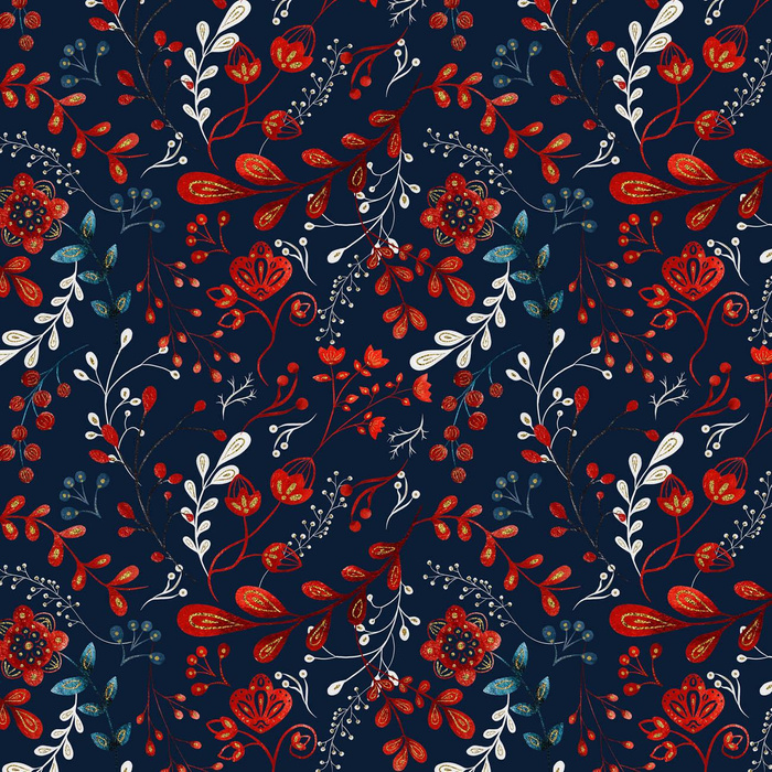 FOLK FLORAL vz. 1 / červená (FOLK LES)- single jersey s elastanem ITY