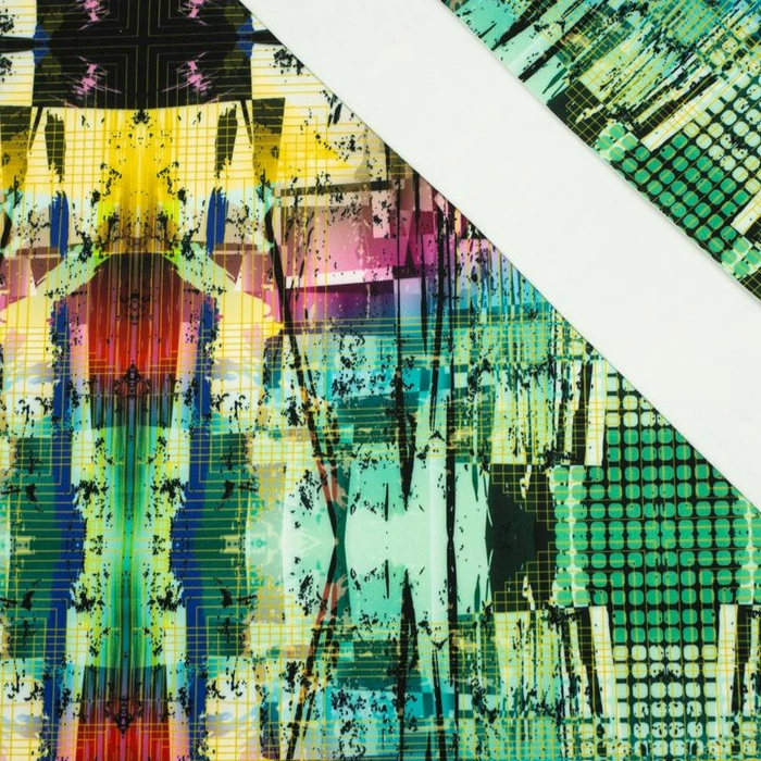 Tkanina typu softshell s potiskem.