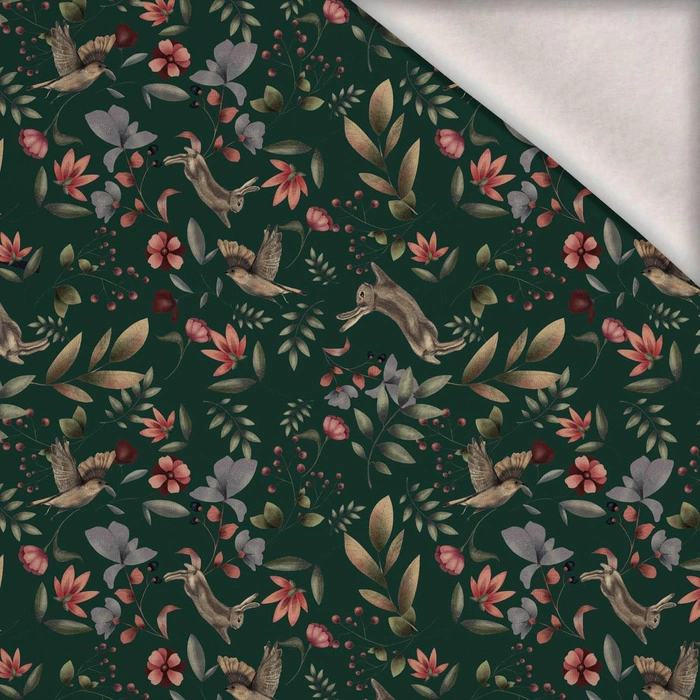 HARES AND BIRDS / BOTTLED GREEN (INTO THE WOODS) - teplákovina počesaná s elastanem ITY