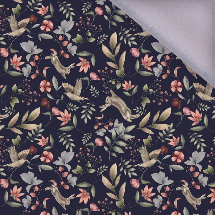 HARES AND BIRDS (INTO THE WOODS) DARK BLUE - softshell