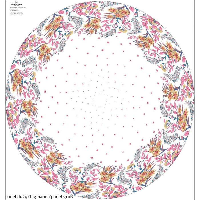 Kruhový panel se samozřejmě skvěle hodí k šití sukní, ale také šatů, přehozů, halenek, tunik a nočního prádla a všude tam, kde potřebujete vzor rozložený do kruhu.