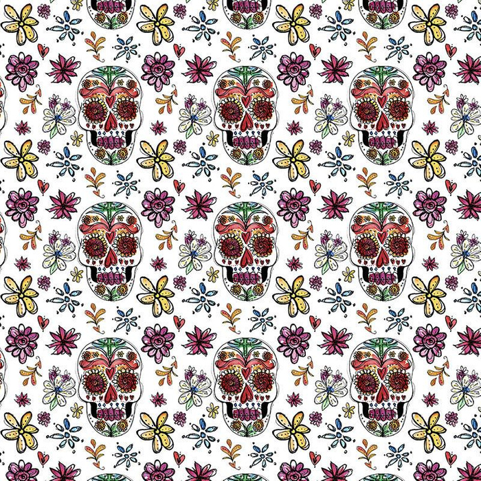 Dia de los muertos je charakterizované množstvím barev. Oslavy plné radosti se nám podařilo přenést na naše materiály a vytvořit z něj barevnou lebku na bílém pozadí.