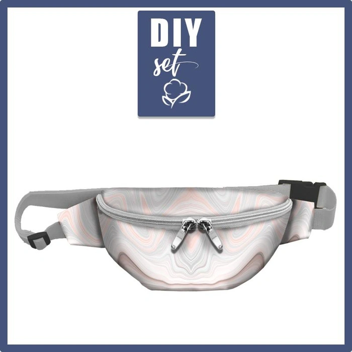 V sadě najdete materiály nutné pro šití ledvinky z přiloženého vzorku. Všechny prvky jsou zabalené v papírovou krabici. Na vzorku je rezerva na steh..