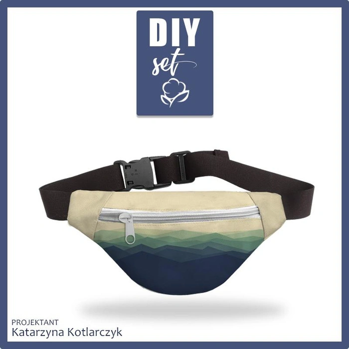 V sadě najdete materiály nutné pro šití ledvinky. Všechny prvky jsou zabalené v papírovou krabici.