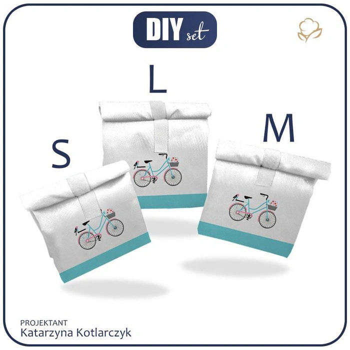 V sadě najdete materiály nutné k šití lunchbaga. Všechny prvky jsou zabaleny v obálce.