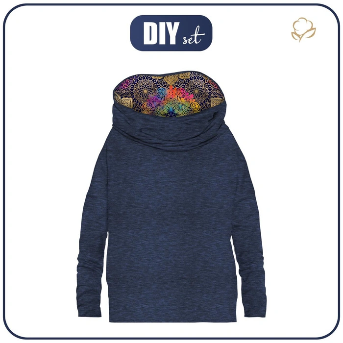 MIKINA NETOPÝR S NÁKRČNÍKEM (FURIA) - MELÍR NAVY / MANDALA vz. 2 - Sada šití XXL