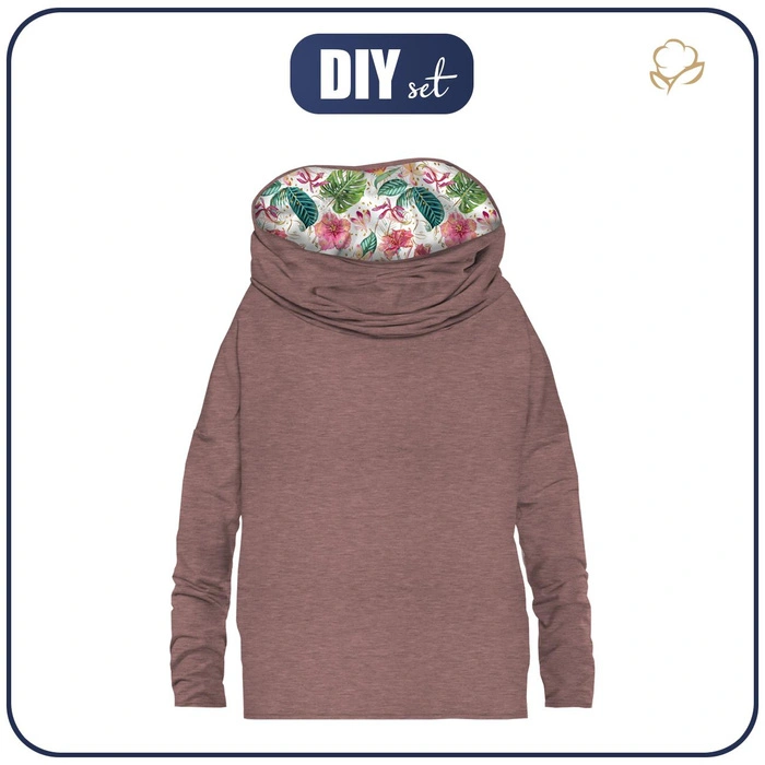 MIKINA NETOPÝR S NÁKRČNÍKEM (FURIA) - RŮŽOVÝ KŘEMEN MELANGE / tropická džungle - Sada šití XL