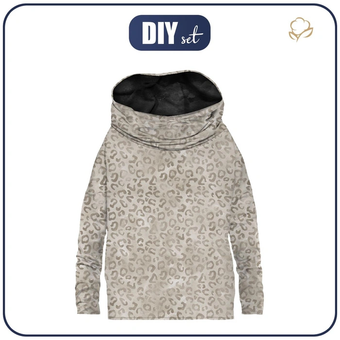 MIKINA NETOPÝR S NÁKRČNÍKEM (FURIA) - SKVRNY / BÉŽOVÝ (SNĚŽNÍ LEOPARDI) - teplákovina