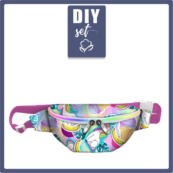 V sadě najdete materiály nutné pro šití ledvinky z přiloženého vzorku. Všechny prvky jsou zabalené v papírovou krabici. Na vzorku je rezerva na steh..
