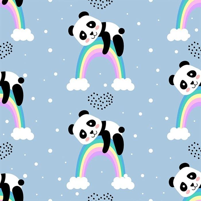 Materiał do szycia z nadrukowanym wzorem PANDA NA TĘCZY