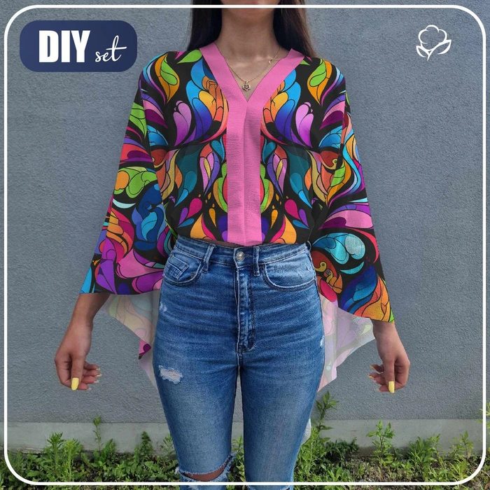 - DIY SADA NA ŠITÍ PAREO - jedná se o hotové prvky vzoru pro PAREO vytištěné na KREPU (stačí vystřihnout a sešít).