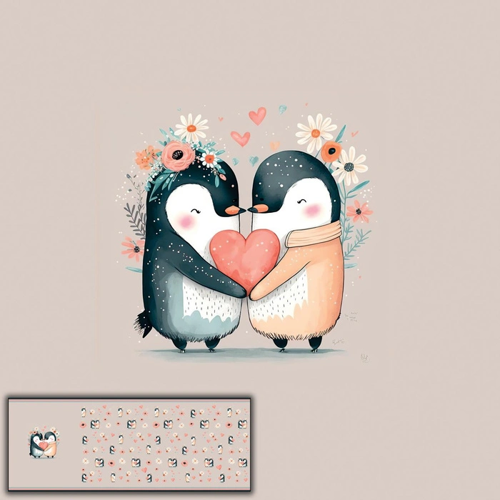 Panel se vzorem "PENGUINS IN LOVE" si můžete objednat na jakémkoli materiálu z naší nabídky.
