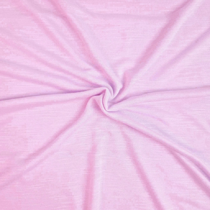 Dzianina delikatnie prześwituje, jest lekka i niezwykle przyjemna dla skóry. Nie ma skłonności do prucia i dodatkowo jest lekko elastyczny po szerokości.
