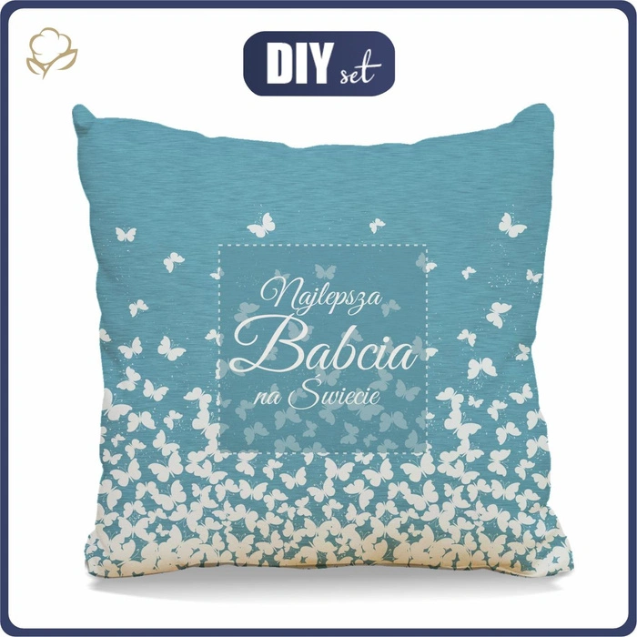 POLŠTÁŘ 45x45 - NAJLEPSZA BABCIA NA ŚWIECIE / motýli - Sada šití