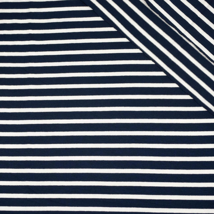 PRUHY TMAVĚ MODRÁ / BÍLÁ 1,0 cm x 0,5 cm - VISCOSE JERSEY