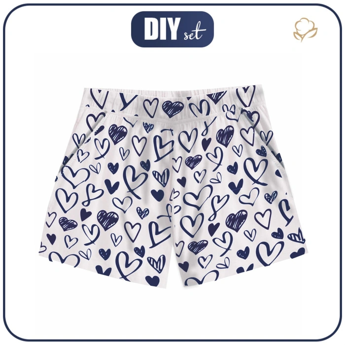 Pyžamo-šortky "LINDA" - SRDCE / navy - Sada šití