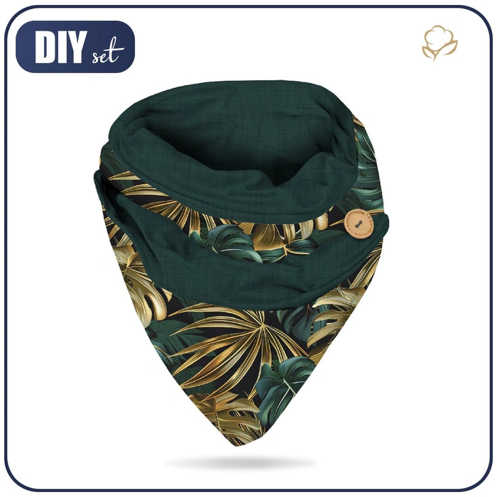 V sadě najdete materiály nutné k šití šátek pletenec.