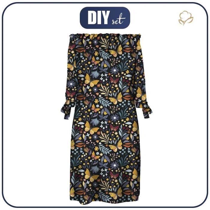 ŠATY "CARMEN" - FOLKOVÍ MOTÝLI/ černý - krep L