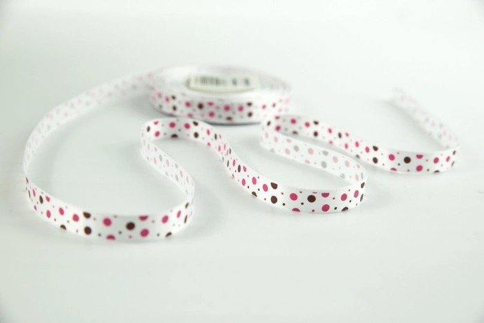 Saténová stuha hnědé a růžové tečky