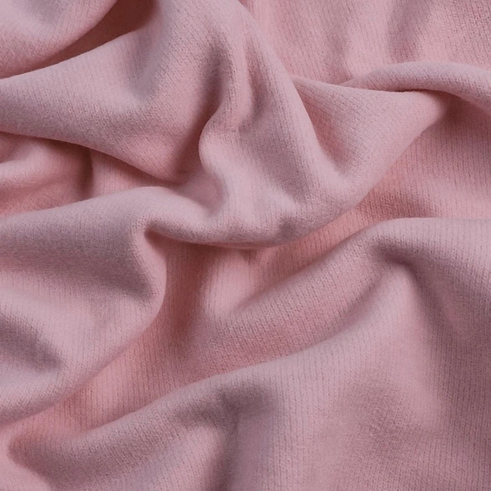 Oboustranná úpletová látka, která spojuje pohodlí s elegancí. Z jedné strany jemně počesaná – měkká, s lehkým chloupkem a nadýchanou strukturou. Z druhé strany má viditelnou a hmatatelnou žebrovanou texturu. Materiál je lehce pružný, masitý a velmi příjemný na dotek.