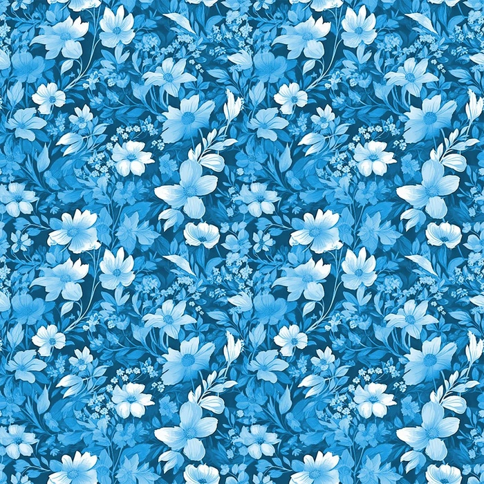 TRANQUIL BLUE / FLOWERS - lycra 300g