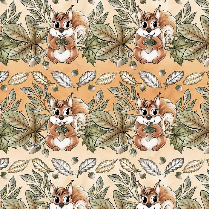 WIEWIÓRKI I LIŚCIE wz. 2 (JESIEŃ W LESIE) - tkanina bawełniana