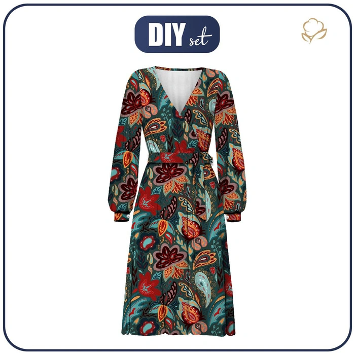 Zavinovací šaty (BIANCA) - BAREVNÝ PAISLEY - Sada šití L