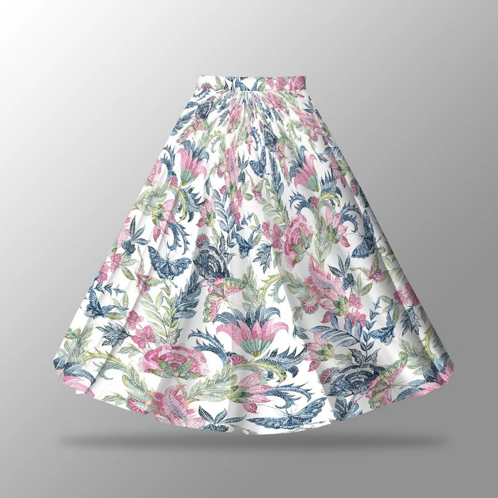 Das Tellerrock Panel eignet sich perfekt zum Nähen von Röcken, aber auch von Kleidern, Umhänge, Blusen, Tuniken und Nachtwäsche und überall dort, wo du ein halbkreisförmig angeordnetes Muster benötigst.