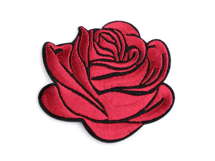 Aufbügler - Rose mit präziser Maschinenstickerei.