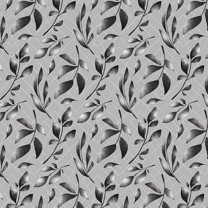 Nähstoff mit dem BLÄTTER Ms. 14 / grau Motiv