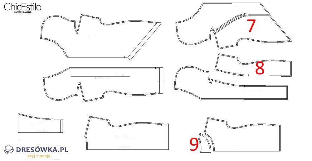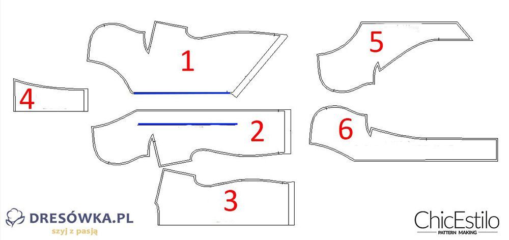 * na niebiesko na wykroju zaznaczone są miejsca wszycia/naszycia zamka