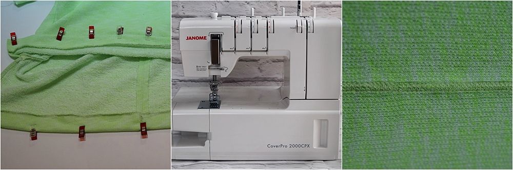 Ponieważ maszyna nie posiada funkcji górnego przeplotu, ozdobny ścieg można na niej uzyskać poprzez szycie na lewej stronie materiału dwoma lub trzema igłami. Na prawej stronie powstaje wtedy fajny ozdobny przeplot, który zrobiony na przykład kontrastowymi nićmi będzie naprawdę efektowny :)
