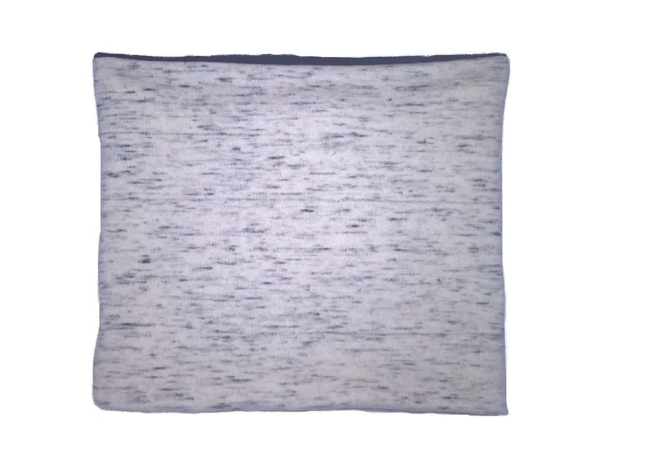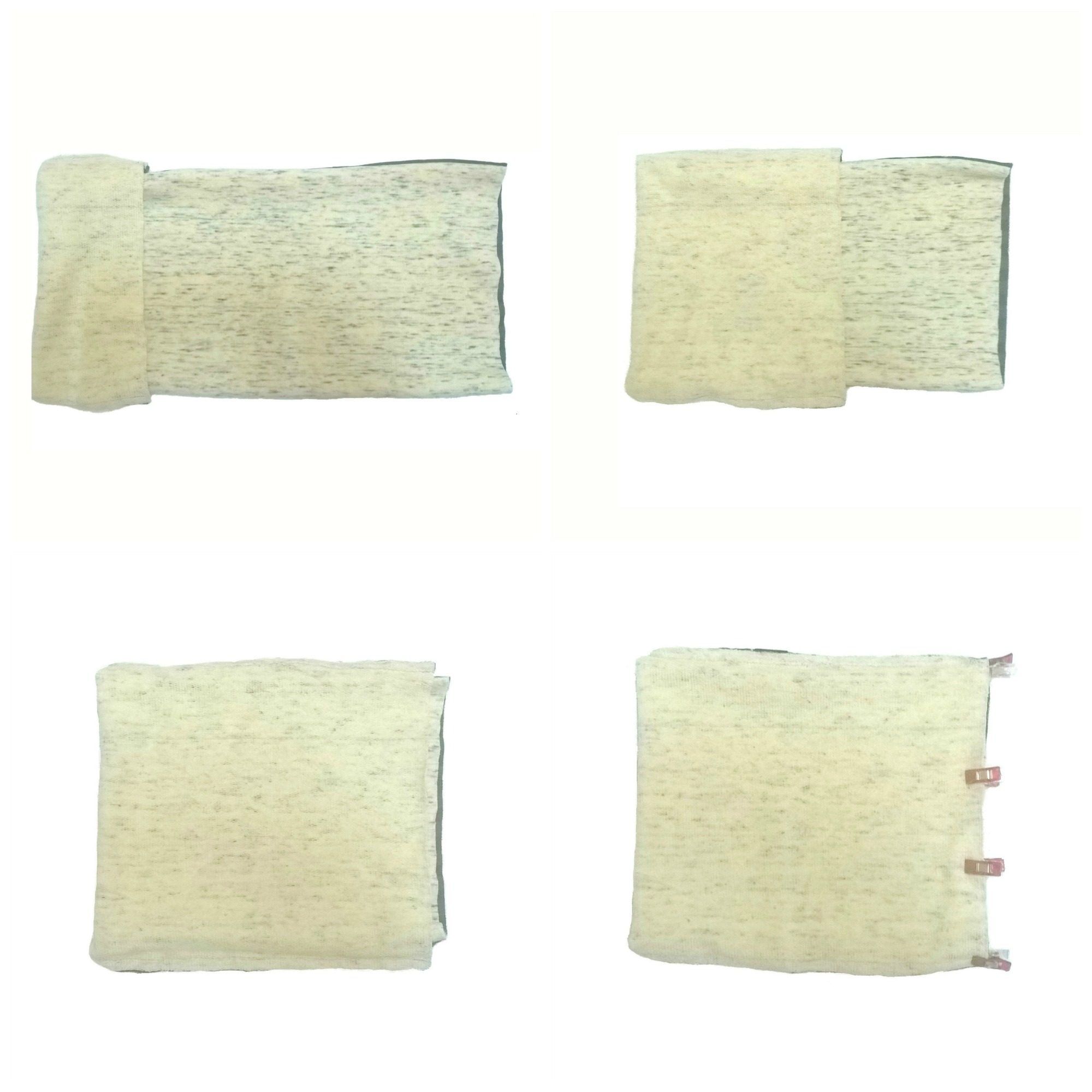 Wywijamy jeden z krótszych brzegów komina na lewą stronę (analogicznie do podwijania rękawa) i spinamy z przeciwległym brzegiem