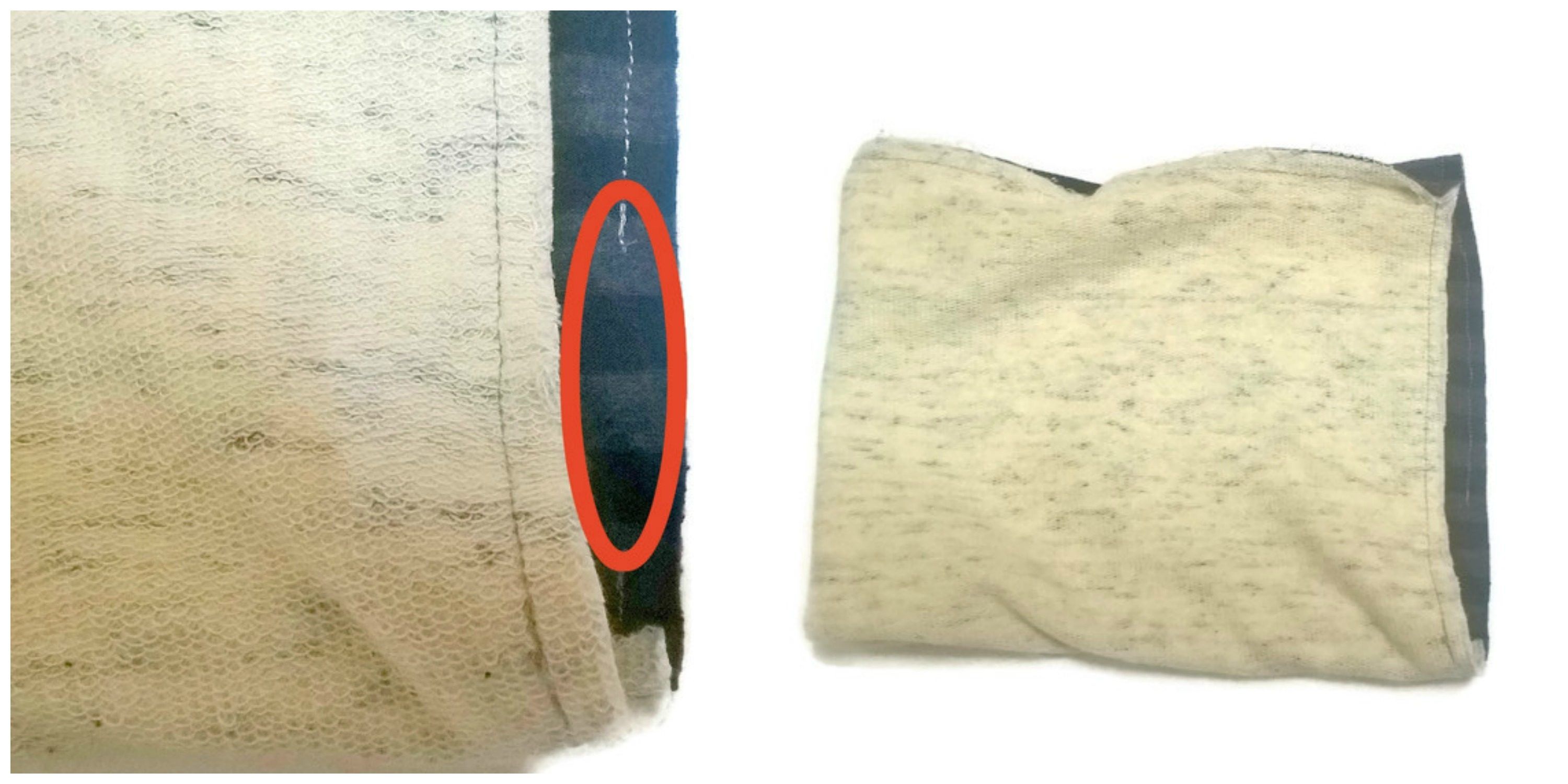 Zszywamy dłuższe, spięte boki ściegami dedykowanymi (zygazak, ścieg owerlokowy) lub owerlokiem