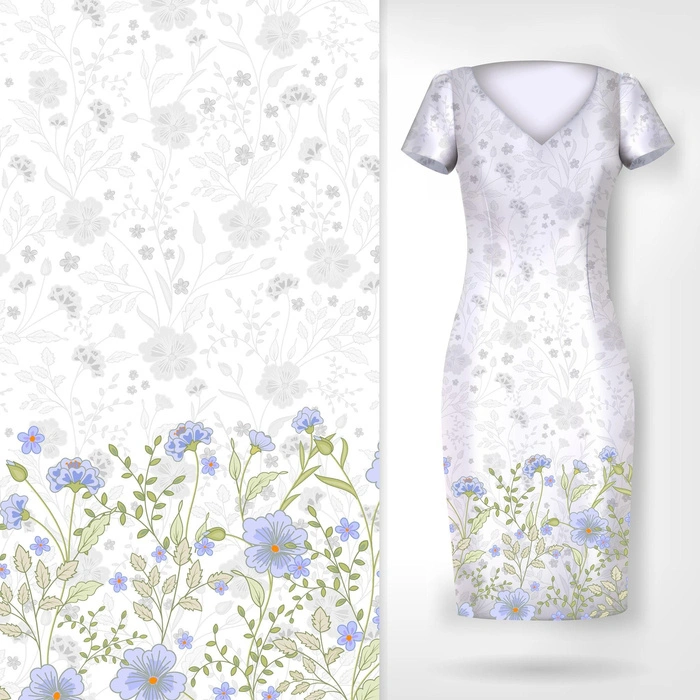 BLUMEN (Motiv 5 grün) / weiß - Kleid-Panel Baumwoll Musselin