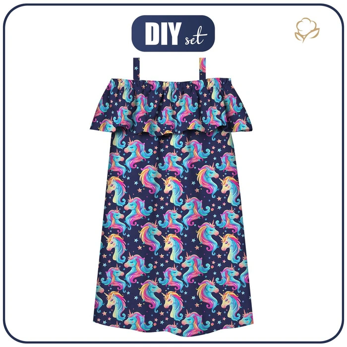 Carmenausschnitt Kleid (LILI) - FAIRY WORLD wz.1 (UNICORN) - Nähset - 98-104