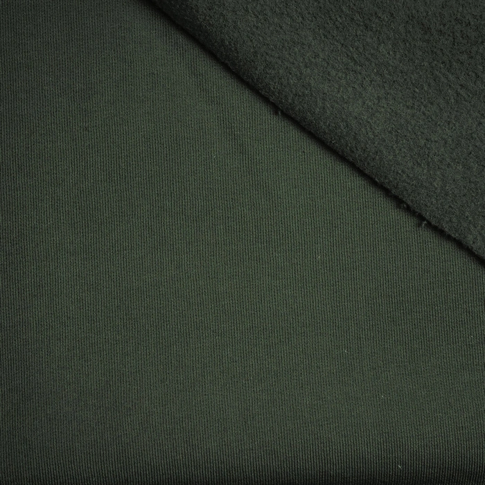 Der Stoff auf der Oberseite ist glatt, die Unterseite ist mit einem schönen Flor versehen. Der angeraute Wintersweat ist unglaublich weich im Griff, warm, hautfreundlich, bietet thermischen Komfort, kratzt nicht und dehnt sich nicht.