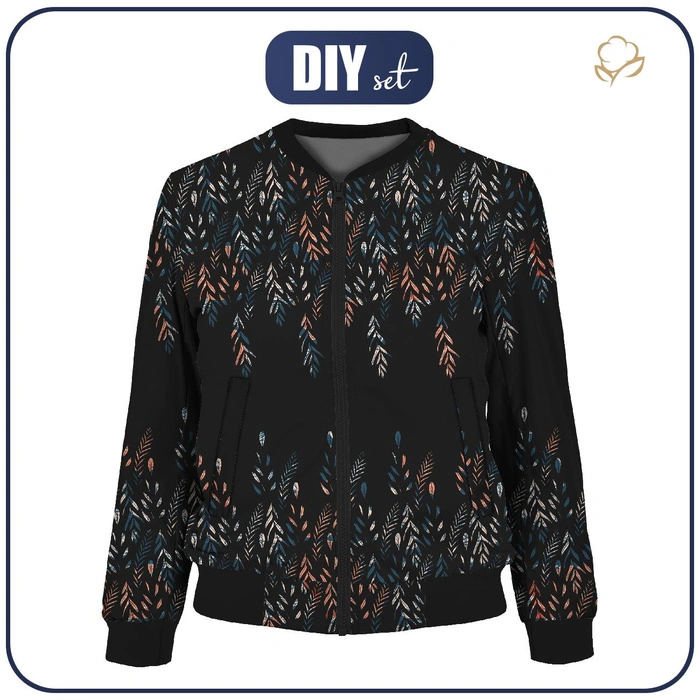 DAMEN BOMBERJACKE (KAMA) - BLÄTTER M. 3 / SCHWARZ - Nähset L