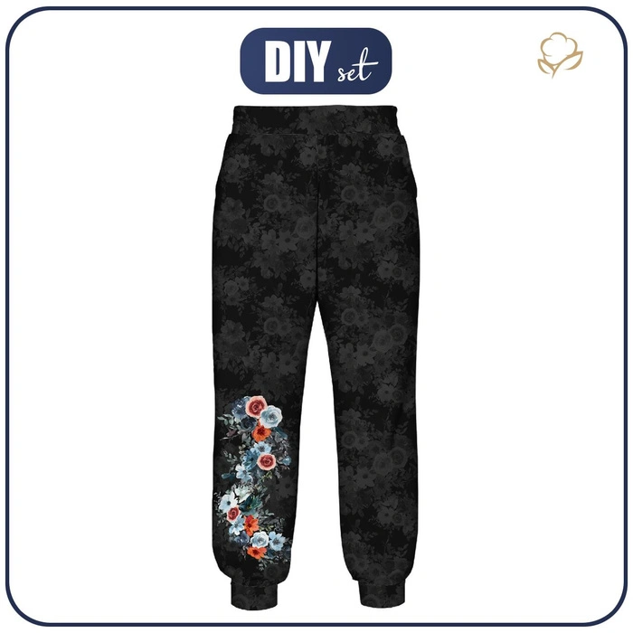 DAMEN JOGGINGHOSE (NOEMI) - AQUARELL BLUMEN Ms. 2 / schwarz - Nähset M