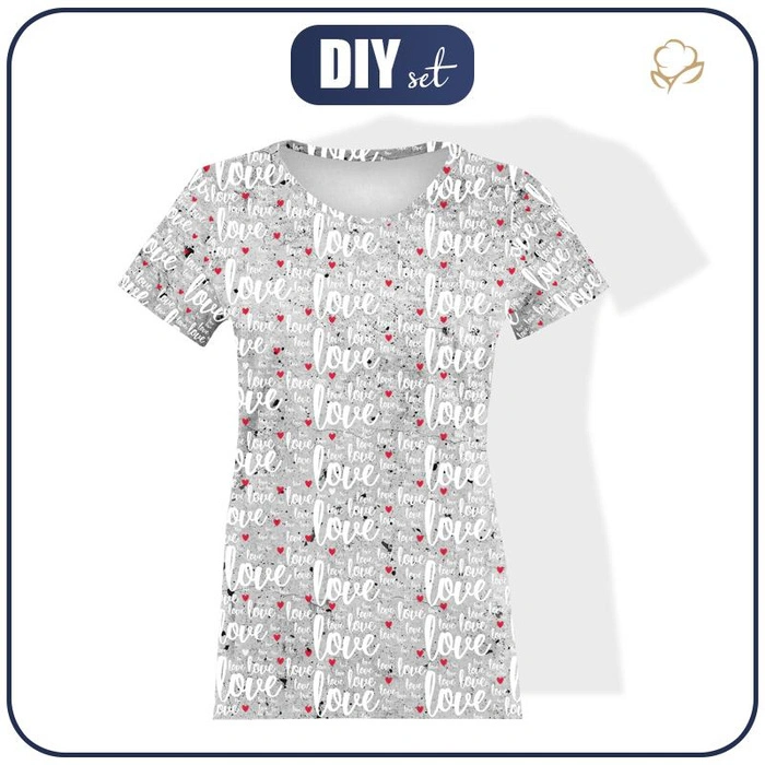 DAMEN T-SHIRT - LOVE WEIß / beton - Single Jersey S