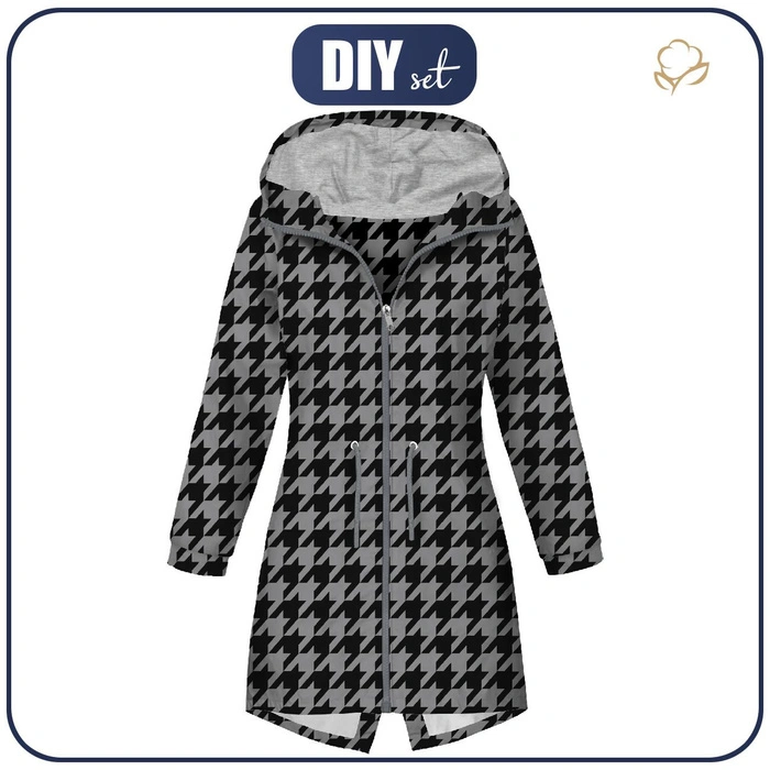 DAMENPARKA (ANNA) - SCHWARZER HAHNENTRITT (groß) / grau - Softshell XXL