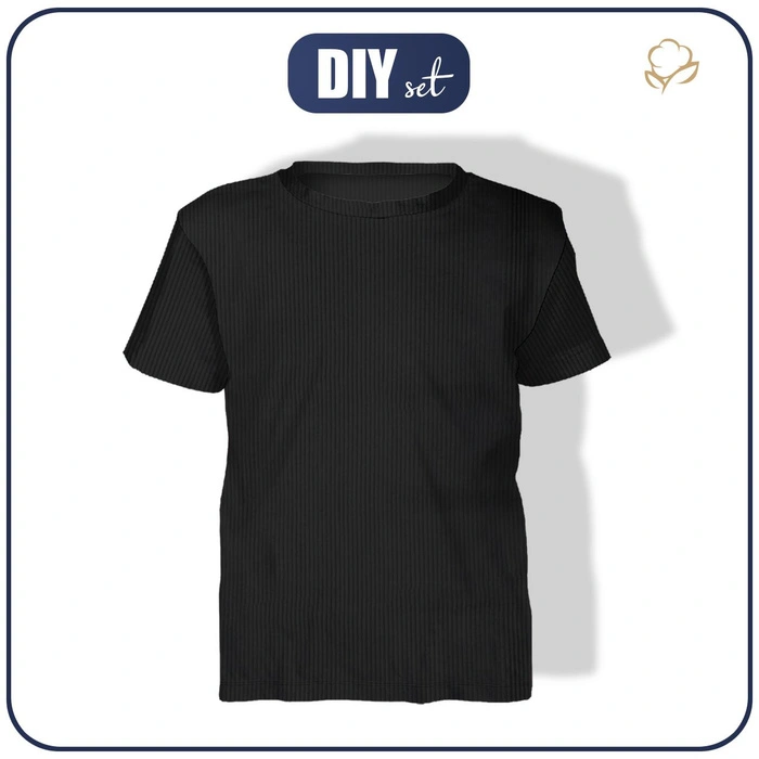 DIY-Set – Kinder-T-Shirt aus RIB JERSEY Baumwolljersey - BLACK