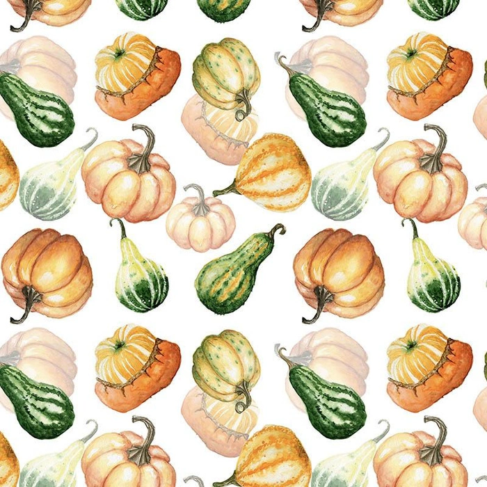 KÜRBISSE UND ZUCCHINI / weiß (KÜRBISGARTEN) - Baumwoll Webware