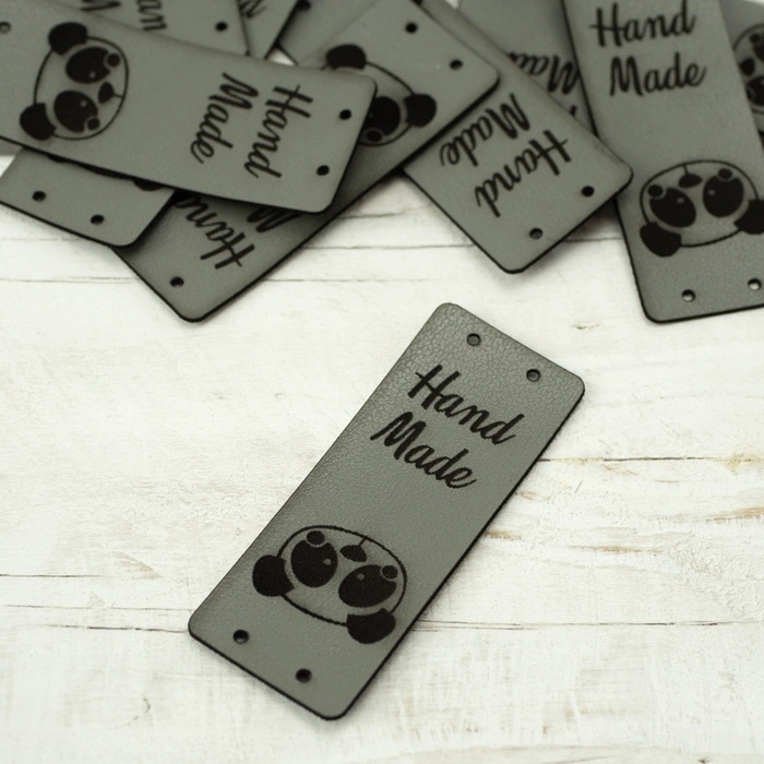 Falt-Label "Hand Made" - Panda 2 x 5 cm - grau