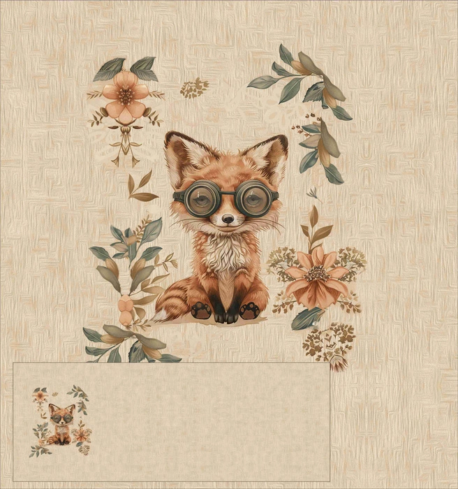 FOX STEAMPUNK FOREST - panoramisches Paneel (60cm x 140cm) Viskose-Jersey